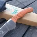 Kniven levereras med en slitstark svart nylonslida för säker förvaring – perfekt för jaktväskan eller fisketuren.