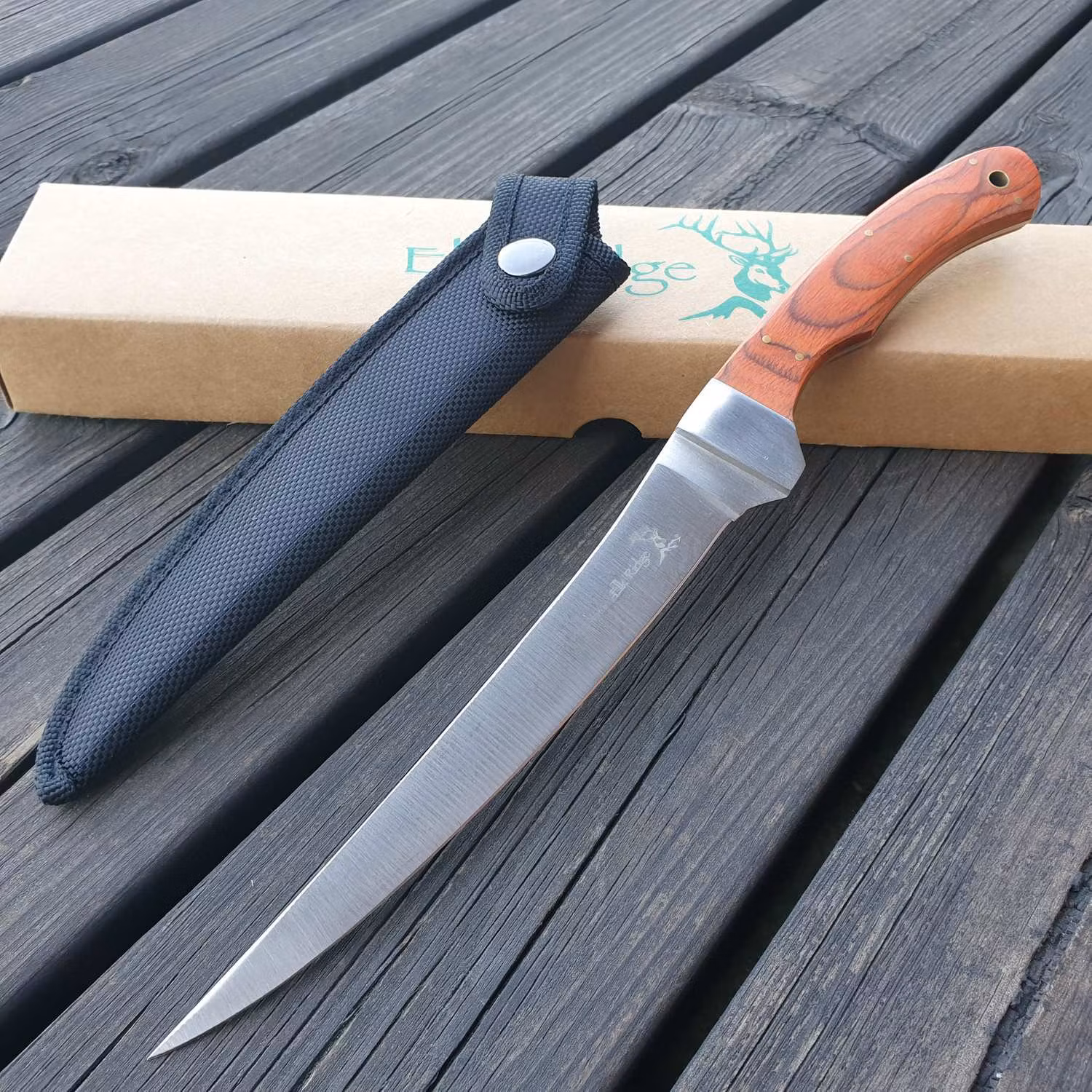 En robust och snygg filekniv från Elk Ridge, utformad för dig som vill ha både funktion och stil vid filéning, jakt eller matlagning utomhus. Det slipade stålet